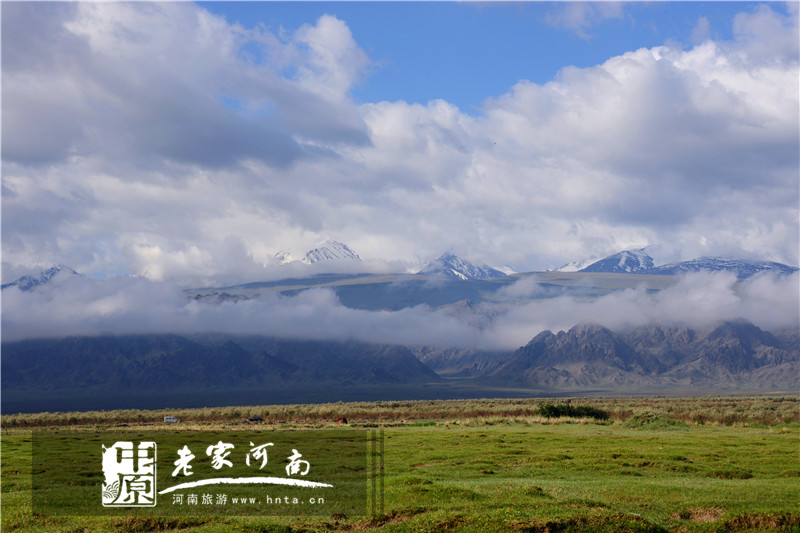 巴里坤草原海拔1650米,雪山晶瑩,松林青翠,云霧繚繞,變幻莫測。人們稱這種美麗景色為