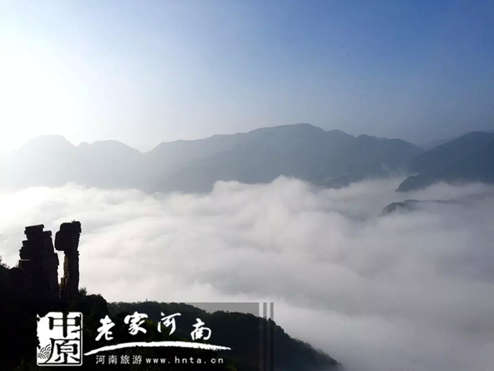 雨過天晴,黛眉山的大山大水在云海中時隱時現(xiàn),似真似幻,使人感到一種縹緲的仙境般的美。滿山滿谷的云海,蒸騰著,翻滾著,吞沒著山間的一切。輕盈的霧,從山谷中一團(tuán)一團(tuán)地溢出,緩緩地漫上山坡,散成一層輕柔的薄紗,籠罩著黛眉山,如夢、如幻、如詩、如畫,此情此景,美不勝收。那一刻,身臨其境,宛若仙子般,享受著眾山的膜拜。如此美麗的黛眉山,如此夢幻的黛眉云海,此時不去,更待何時呢?