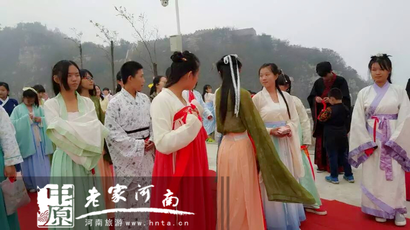 2015年轎頂山首屆漢服文化旅游節(jié)于10月18日在新鄉(xiāng)市輝縣轎頂山旅游景區(qū)成功舉辦。此次漢服文化旅游節(jié)活動(dòng),轎頂山景區(qū)推出漢服祈福轎頂山、漢服等轎頂、器樂(lè)演奏、禪茶雅集、篝火晚會(huì)等豐富多彩的文化活動(dòng)。活動(dòng)期間許多游客親自參與漢服祈福轎頂山祈;顒(dòng),感受漢服魅力,傳承漢服文化。
