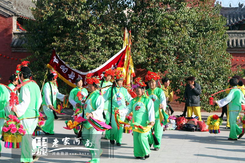 為增加廟會色彩,太昊伏羲陵景區(qū)組織了近30個擔經挑、舞龍、舞獅、旱船、盤鼓、腰鼓等民間藝術團體在太極門廣場、伏羲文化廣場等場地進行不間斷演出。(圖/文:程敬華)
