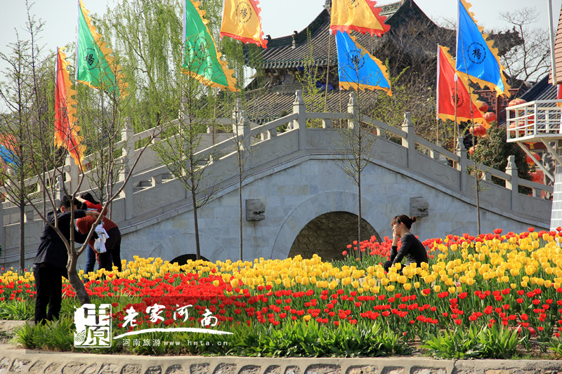 步入藝術(shù)節(jié)會場,中外游客既可在游覽天波楊府鱗次櫛比的宋式建筑群的同時,盡興在郁金香花叢中“遨游”。