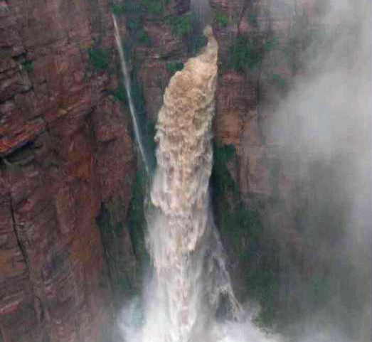 高度達到168米的九蓮山“壺口瀑布”這時才顯出它的雄渾,聲震峽谷,驚天動地。