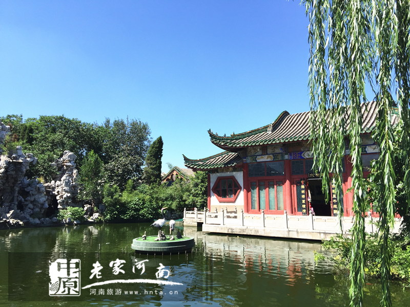 楊家花園采用江南園林造園手法,花園南部挖池疊山,山上建亭,山下修洞,水池上修建九曲橋,臨水建有水榭,形成敞開式的山水景觀。花園的北區(qū)有一座硬山式兩層樓房,前后花磚墀頭,上覆筒瓦頂,琉璃剪邊,有回廊連接樓的北側(cè)有一座古城門樓式的建筑,即“天波門”。