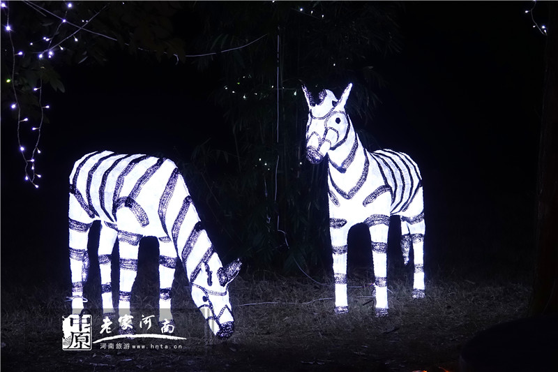 長(zhǎng)達(dá)10米的海豚、憨態(tài)可掬的熊貓、高傲的長(zhǎng)頸鹿、開屏的孔雀及斑馬、水母等數(shù)十種動(dòng)物照型及隨著音樂節(jié)奏變換閃耀的“吊橋”、“時(shí)光隧道”、“埃菲爾鐵塔”等大量運(yùn)用超現(xiàn)實(shí)的視覺動(dòng)畫、投影、燈光等科技手段,打造出的最新燈光設(shè)計(jì)作品,使游客感受到高科技下二郎山景區(qū)最閃耀的美。