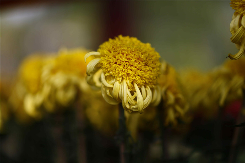 做為本屆菊花文化節(jié)主會(huì)場(chǎng)之一,清明上河園展出的菊花不但色彩艷麗,而且造型、品種更是繁多。幽靜的市井街道與瑰瑋建筑掩映在斑斕的秋色中,徜徉園區(qū),令人宛如置身于童話世界中。配著周圍的菊花花海,讓人沉醉、讓人流連。〝z影 劉永海)
