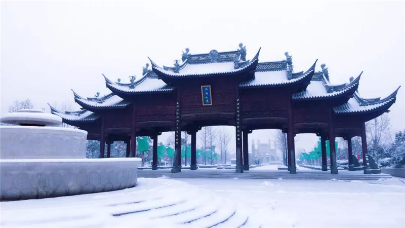 白雪覆蓋的啟封牌樓