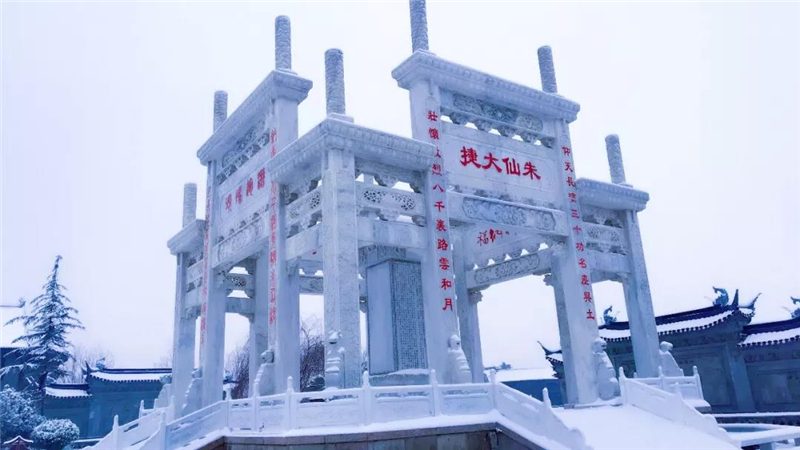 風(fēng)雪中晶瑩剔透的四面牌坊