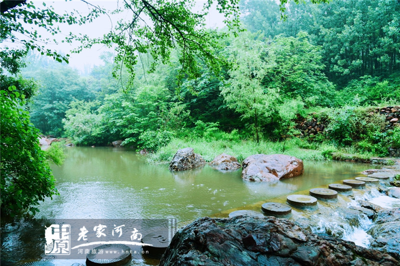 遇到潭深處,整個潭里都是碧綠的,和周邊的草木混為一色,甚是好看。