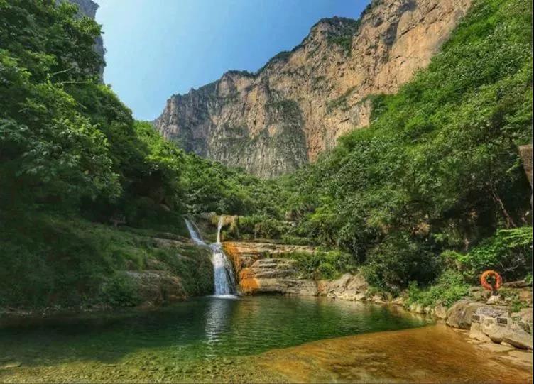 丫字瀑,瀑高十余米,瀑下潭深五六米。掛在兩層山階上,呈丫字形。這里也成為了潭瀑峽中眾多游客休憩、合影留念的好地方。