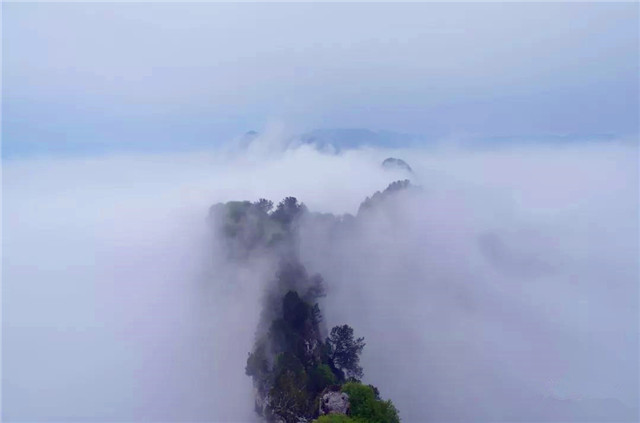 云海中的景物若隱若現(xiàn),令觀者捉摸不定。