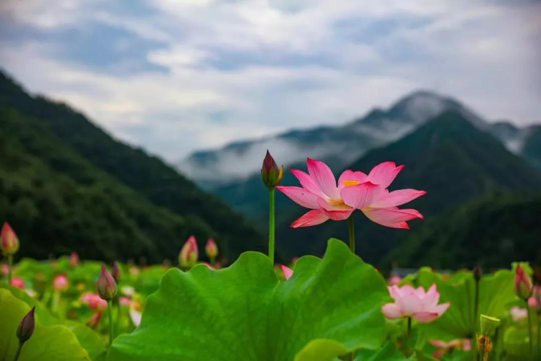 亭亭的花,雄壯的山,一柔一剛,美的恰到好處,也形成了秋扒荷花的最大特色——山中荷花。