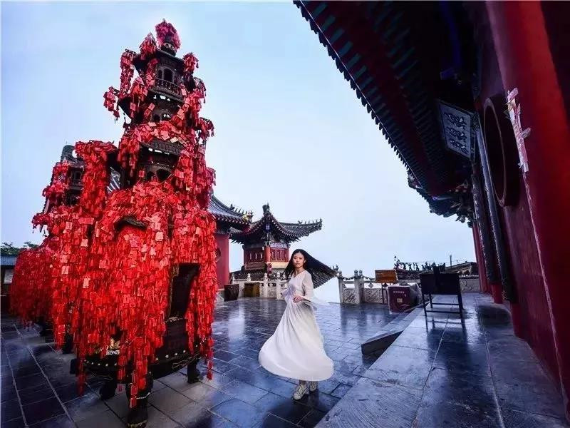 踏千階的云梯棧道登上海拔1297.6米的茱萸峰頂,極目遠眺,群峰連綿。