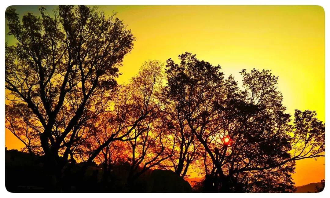太陽從云中緩緩升起,透過樹蔭,眼前的景色就像夢(mèng)境般迷人。