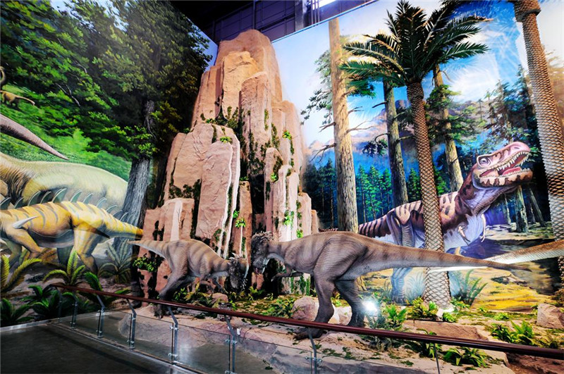 整個展館綜合運用實物展示和聲光電等高科技手段,全景式再現(xiàn)了億萬年前恐龍時代的環(huán)境變遷,是探尋生命起源、探究地球演變、探訪恐龍奧秘、探索科學知識的神秘殿堂,也是穿越時空、回歸自然休閑度假的神奇王國。