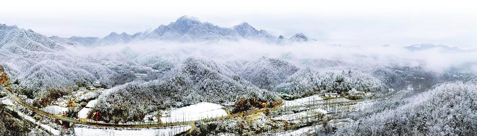 汝陽縣山區(qū)迎來降雪。西泰山景區(qū)被白雪裝扮得分外妖嬈,如一幅精美絕倫的山水畫。