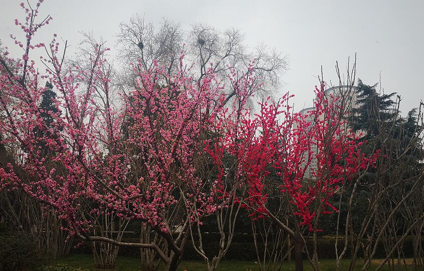 冰天雪地日子還未到 紫荊山公園“桃花”已盛開。