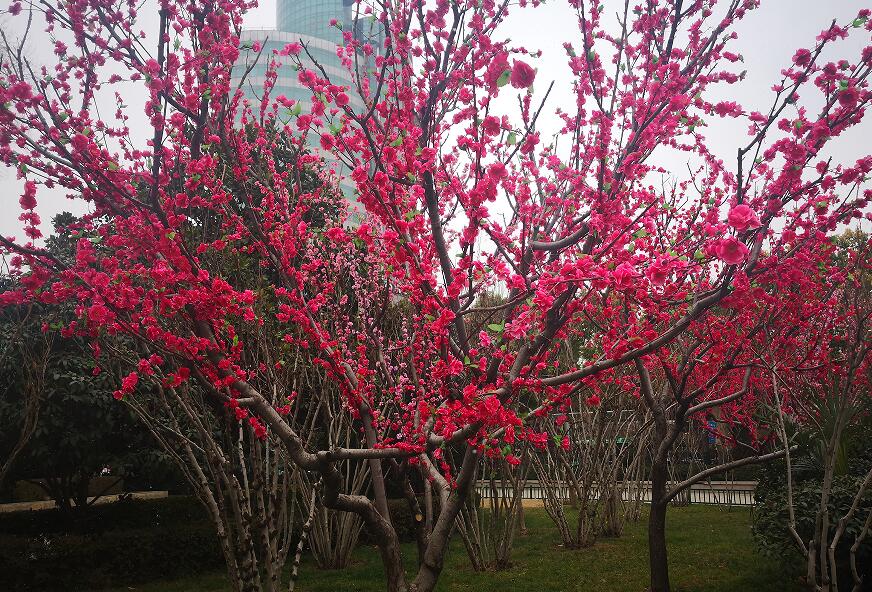 鄭州紫荊山:冬日“桃花”盛開(kāi)
