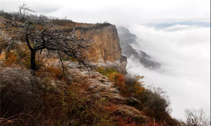 站在太行天路上,景色也跟著壯闊起來(lái),黑的山,白的雪,在蒸騰的霧色里隱約可見(jiàn),一幅幅水墨畫(huà)映入眼簾!