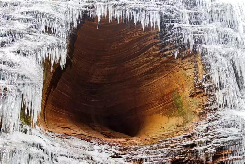每年寒冬是冰瀑最佳觀賞期,隨著氣溫不斷降低,隨處可見的冰柱,或鑲嵌在高崖之上,或懸掛于峽谷兩側(cè)。