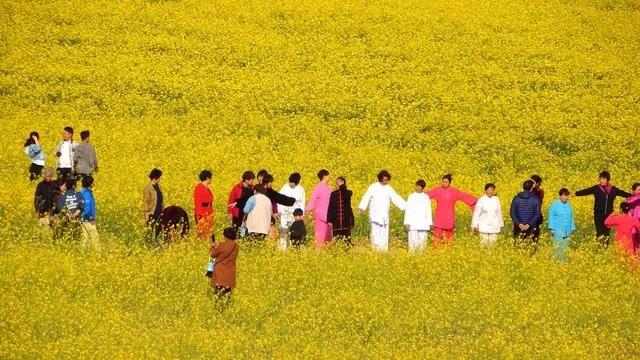在太陽的照耀下,近3000畝油菜花田都是一派金黃的顏色,再加上阡陌小路縱橫交錯(cuò),非常有味道,爬得越高,景色越好,視野也就越開闊。