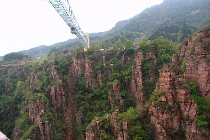 這里還有網(wǎng)紅界令人聞風(fēng)喪膽、分分鐘嚇到腿軟的轎!頂!山!玻!璃!橋!玻璃橋懸于紅石峰叢之間,兩峰地勢險峻、崖壁陡直,中間裂谷橫穿。風(fēng)和日麗之時,踏在玻璃橋上,轎頂山峽谷裂隙盡收眼底,行走其上仿如御風(fēng)而行,驚險無比,云深霧重之際,于橋上懸空賞景如漫步云端,如若“云中天橋”。置身于峽谷天塹以獨特角度感受轎頂山丹霞奇觀。