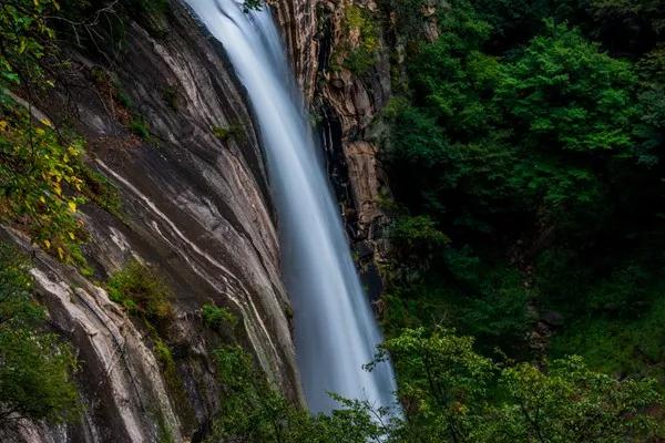 千尺崖的下面,是白河的源頭,一條條飛流而下的瀑布如同銀鏈一般時(shí)隱時(shí)現(xiàn)。這些飛流之下的瀑布飛灑在巖石之下,水花四濺,如同飛珠濺玉,若遇陽光照射,更有彩虹閃現(xiàn)。