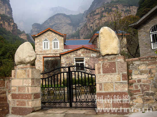 林州天平山景區(qū)內(nèi),用太行山石建成的石頭農(nóng)家賓館。