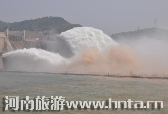 6月19日,2010中國(guó)黃河小浪底觀瀑節(jié)在小浪底風(fēng)景區(qū)開(kāi)幕。開(kāi)幕式后小浪底大壩開(kāi)始開(kāi)閘放水,只見(jiàn)六條黃白交織的水龍和沙龍從壩板洞中噴涌而出,氣勢(shì)磅礴,驚濤拍岸。