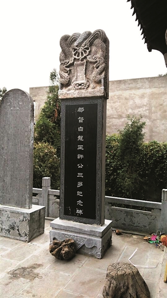 在祠院西側,有一通都督白龍王紀念碑。碑文記載,許三多“生有異行,能通天地之變,識旱澇之機,驅瘟渡厄……每有旱澇天災,鄉(xiāng)人多求之”。那么,這個白龍王是誰呢?許克儉說,他就是許氏七世祖許同元第三子,名三多,字重畢,系許衡第八代孫。