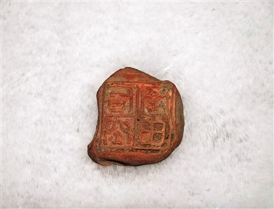 該封泥長、寬各約2厘米,厚約0.3厘米。封泥是一種官印按于泥上作為實物和木制牘函封緘的憑證,以防外人拆開偷看。它不是印章,而是古代用印的遺跡——蓋有古代印章的干燥堅硬的泥團。由于原印是陰文,蓋在泥上便是陽文。