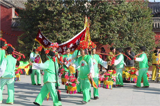 這種集祭祖、娛神、求子為一體的祭拜形式還與古陳國崇尚巫風(fēng)盛行巫舞有關(guān)。據(jù)《漢書·地理志》、《漢書·匡衡》記載;周武王的長女大姬無子,因祈禱得子,所以喜歡鬼神歌舞之樂。在陳國最高統(tǒng)治者的倡導(dǎo)下,全國盛行巫風(fēng),競于歌舞,我國第一部詩經(jīng)總集《詩經(jīng)·陳風(fēng)》中的《宛丘》、《東門之枌》等詩中都有反映陳國男女酷愛歌舞的習(xí)俗。據(jù)傳,伏羲、女媧都是人首蛇身(龍身),伏羲是大龍,女媧是小龍,在一次洪災(zāi)之后,世界上僅留下她兄弟二人,為了繁衍人類,有人說是“煙合”,有人說是“滾磨”,有人說是“接竹”,總之吧,上神之意讓他們兄妹結(jié)婚,他們就以草扇遮面結(jié)為夫妻,摶土造人。在漢代的石刻畫像和磚畫像中,有不少伏羲、女媧的交尾圖,畫像中二人下身兩條尾巴緊密地纏繞在一起。圖上還往往題有“伏羲”字樣。擔(dān)花籃中有一個動作是二人背靠背,使背后下垂的黑紗相互纏繞交合,象征伏羲、女媧交尾狀,這與東漢石畫像中二人的交尾很相似。為舞者伴奏的歌詞很多,大多與伏羲、女媧有關(guān)。如:“上天神留下他兄妹二人,無奈何昆侖山滾磨成親,日月長生下了兒女多對,普天下咱都是龍的子孫……”。所以,擔(dān)經(jīng)挑這種原始巫舞之?dāng)?shù)千年不衰,也是人祖的功德所系,是龍的傳人不忘祖根的美德所系。
