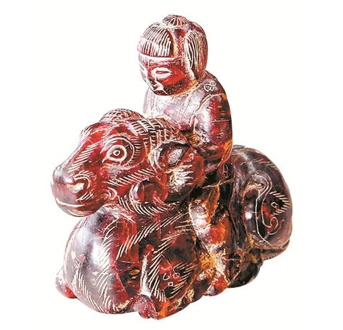 墓中出土的琥珀騎羊人(資料圖片)