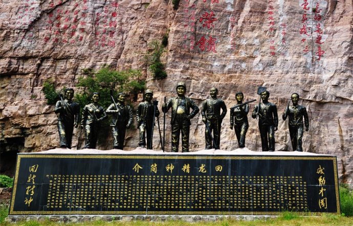 回龍精神由回龍村黨支部書記的張榮鎖于上世紀(jì)九十年代捐出百萬家資,帶領(lǐng)回龍村英雄的干部群眾集體創(chuàng)造的,是太行山人的堅韌、智慧和硬骨頭精神的體現(xiàn)。這個英雄的群體經(jīng)過三年多的艱苦創(chuàng)業(yè),戰(zhàn)天斗地,改造山河,在千仞絕壁上修通了8000米的盤的絕壁天路,在百丈紅巖,堅如鋼鐵的峭壁上,鑿?fù)?000多米的S形隧道,創(chuàng)造了鄉(xiāng)村公路史上的奇跡。絕壁天路和清峰關(guān)隧道穿越太行的山?jīng)芤,亦更是一部震撼心靈的紅色精神,感動中國的教科書。