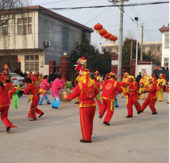 “艾莊銅器舞”是河南省非物質(zhì)文化遺產(chǎn),表演時,執(zhí)鞭子鼓者立于中央,一手執(zhí)三四尺長的鼓把將鼓舉于頭頂,一手拿鼓槌用力擊鼓,他是全隊的指揮和靈魂。圍繞著鞭子鼓的是弓子鑼與小镲,表演者肩背竹弓子,鑼吊在竹弓子前端,飾有花花綠綠的綢子,敲打起來弓子忽閃忽閃,再加上墊步、八字步、十字步等步法,比秧歌、腰鼓更有一番活潑、花哨的美。最外圍是打鐃、敲大鼓(當(dāng)?shù)胤Q之為大擂子)、大鑼者,這些人位置基本固定,手卻沒閑著,打到酣處,便將鼓槌拋向空中再接住。打大鐃者,將兩扇鐃舉過頭頂,翻些花樣,稱之為亮鐃。要知道,一對大鐃可達 15 公斤重。正因為有這些絕活,艾莊鄉(xiāng)銅器舞的名聲越傳越響,除了參加市里的各種慶典活動,方圓十里八鄉(xiāng)乃至長葛的鄉(xiāng)親娶媳婦、辦喜事都要請銅器社的人助興。