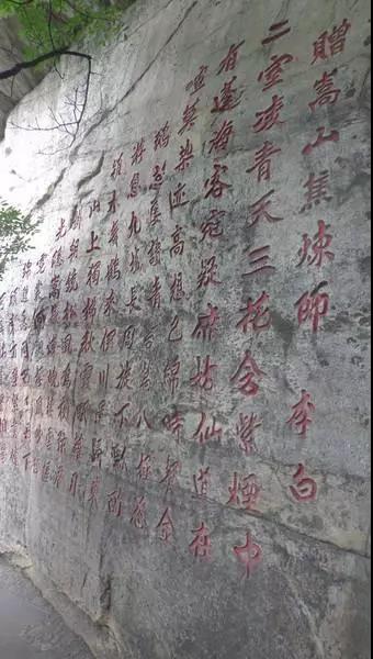 今人登嵩山峻極峰途中,可欣賞刻在中岳行宮西南峭壁上的這首詩。