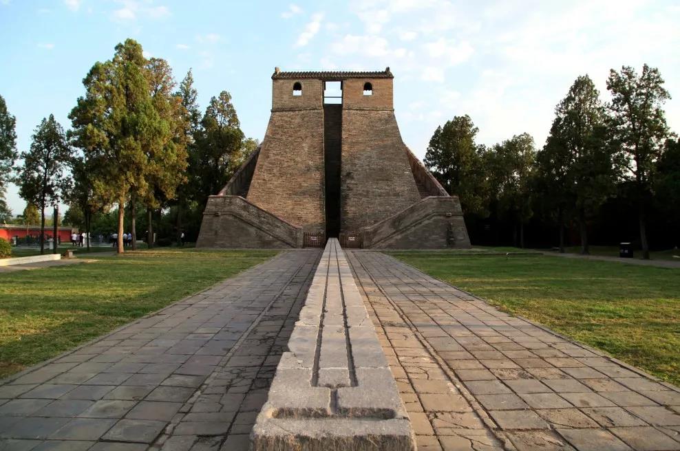 觀星臺(tái)是一座高大的青磚石結(jié)構(gòu)建筑,由臺(tái)身和量天尺組成。