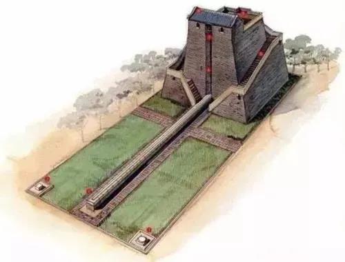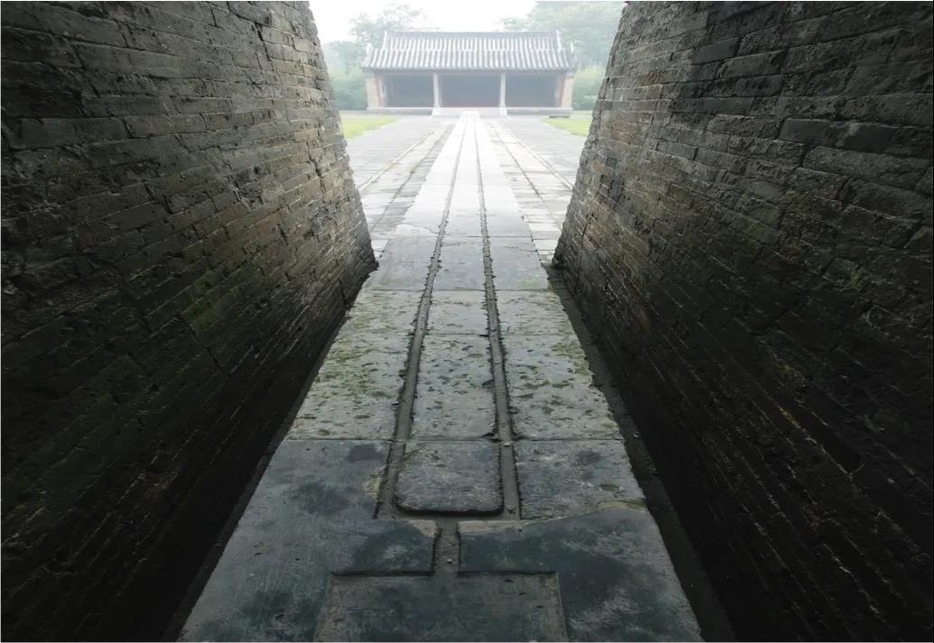 直壁與石圭間留有36厘米的間隙,是橫梁下垂懸球的地方,用以經(jīng)常校驗(yàn)橫梁和石圭間的垂直關(guān)系及高差。直壁上方相對(duì)兩小室的窗口的下沿即置橫梁的位置,由此到石圭的高度等于40尺。