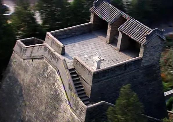 臺(tái)身狀若覆斗,高9.46米,連小室通高12.62米。北壁下方兩側(cè)設(shè)有對(duì)稱的兩個(gè)通道口,由此盤(pán)旋登臨臺(tái)頂。通道及頂部邊沿筑有1.05米高的短欄和矮墻,可憑欄遙望長(zhǎng)空。