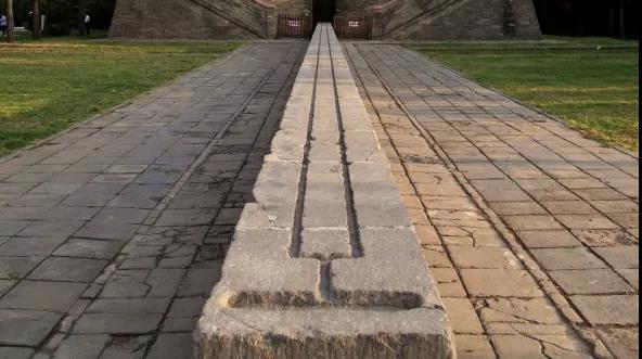 臺(tái)身北壁凹槽內(nèi)向北平鋪的是石圭,被人稱為“量天尺”。它的表面用36方青石板接連平鋪而成,下部為磚砌基座。石圭長(zhǎng)31.196米,寬0.53米,南端高0.56米,北端高0.62米。