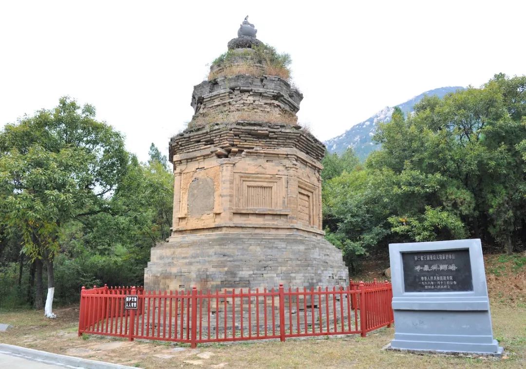 凈藏禪師塔位于嵩岳太室山南麓的積翠峰下,是我國現(xiàn)存最早的八角形仿木結(jié)構(gòu)磚塔,1988年列為全國重點(diǎn)文物保護(hù)單位。
