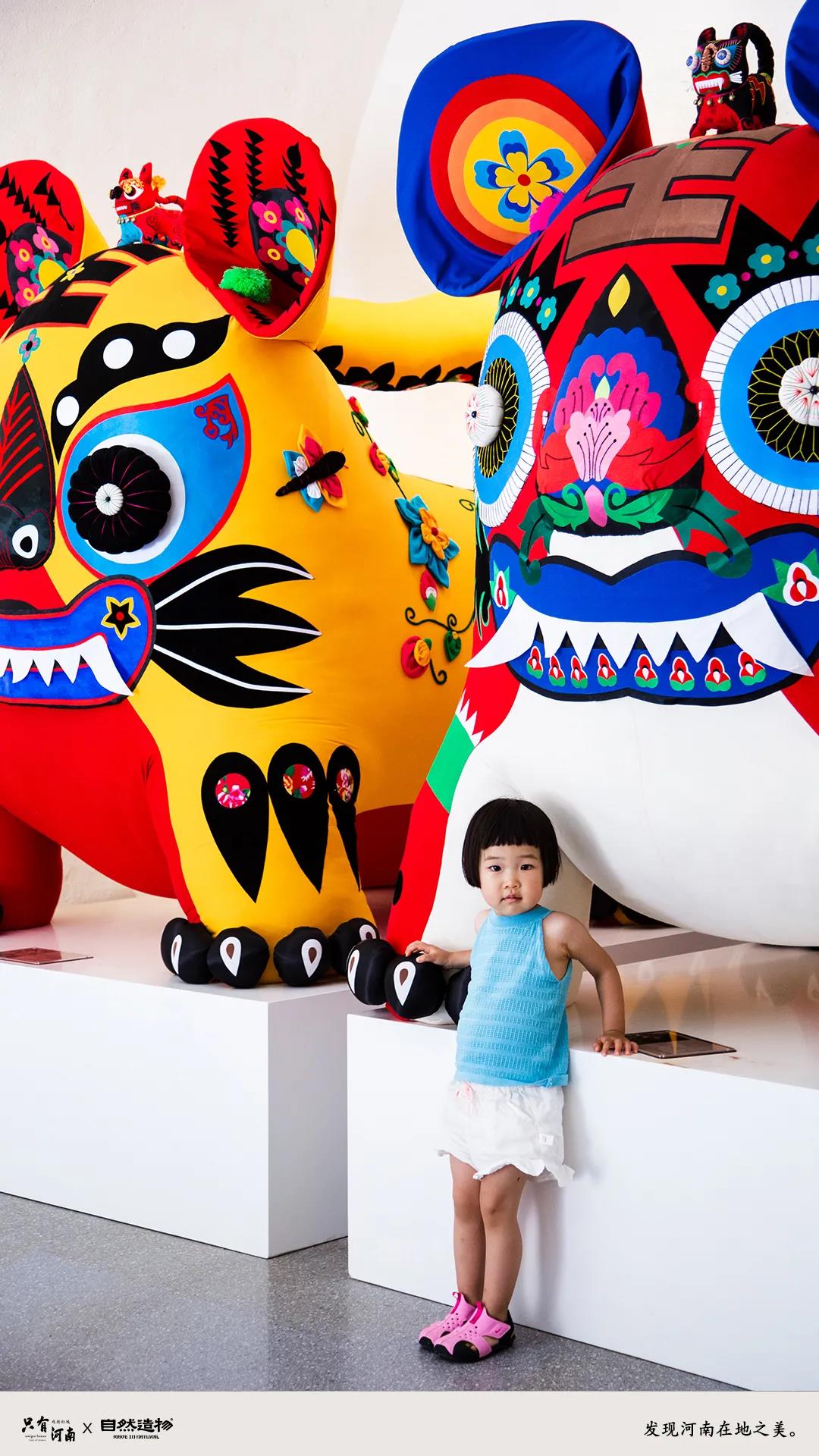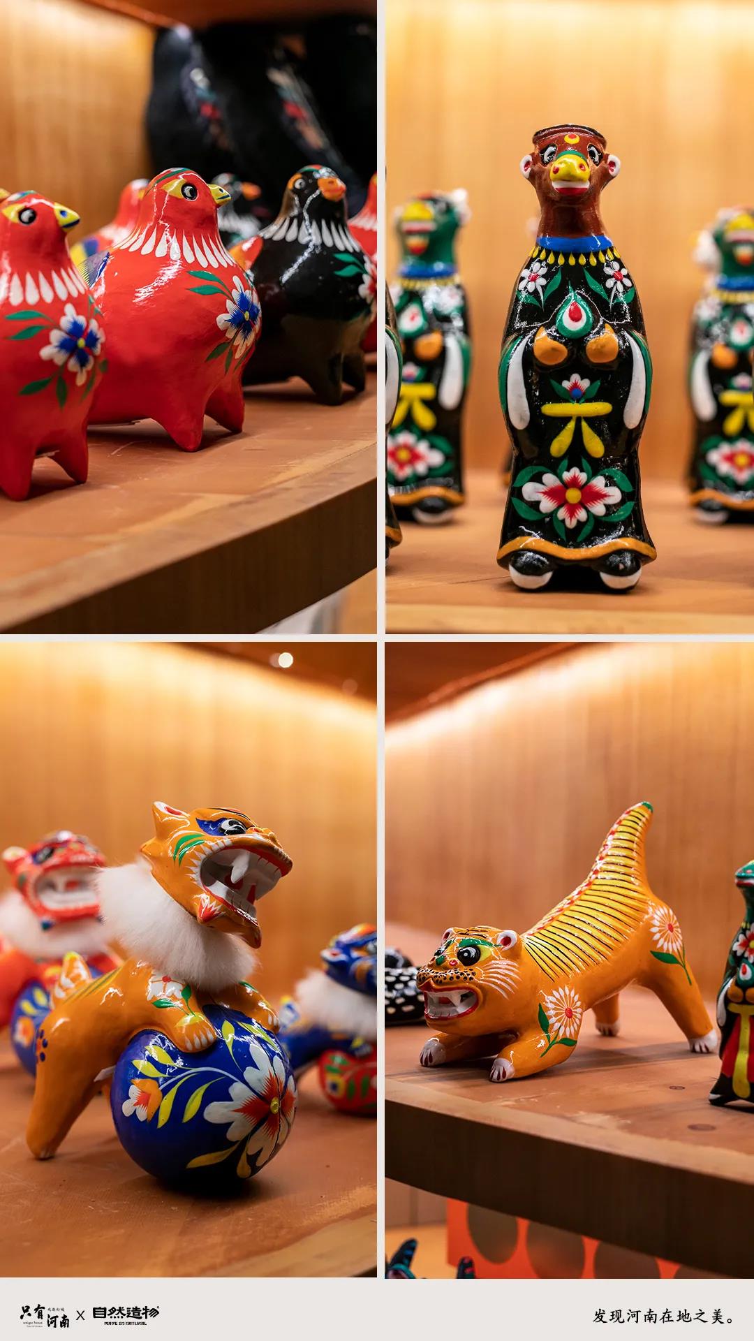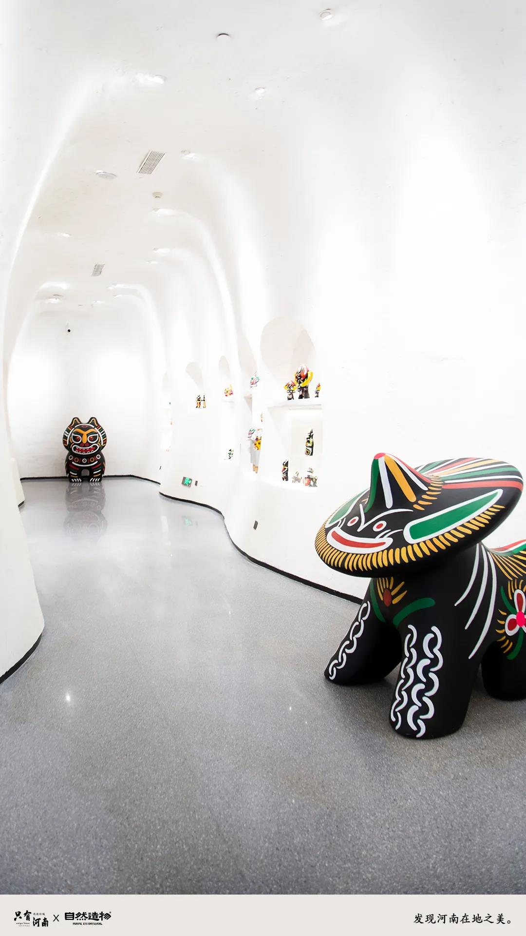 這一空間是以布藝刺繡和泥塑彩繪工藝進(jìn)行展開分析解構(gòu),其中包含浚縣萬;、淮陽泥泥狗、?h泥咕咕、鄭州猴加官等幾個主要地區(qū)的手工藝。