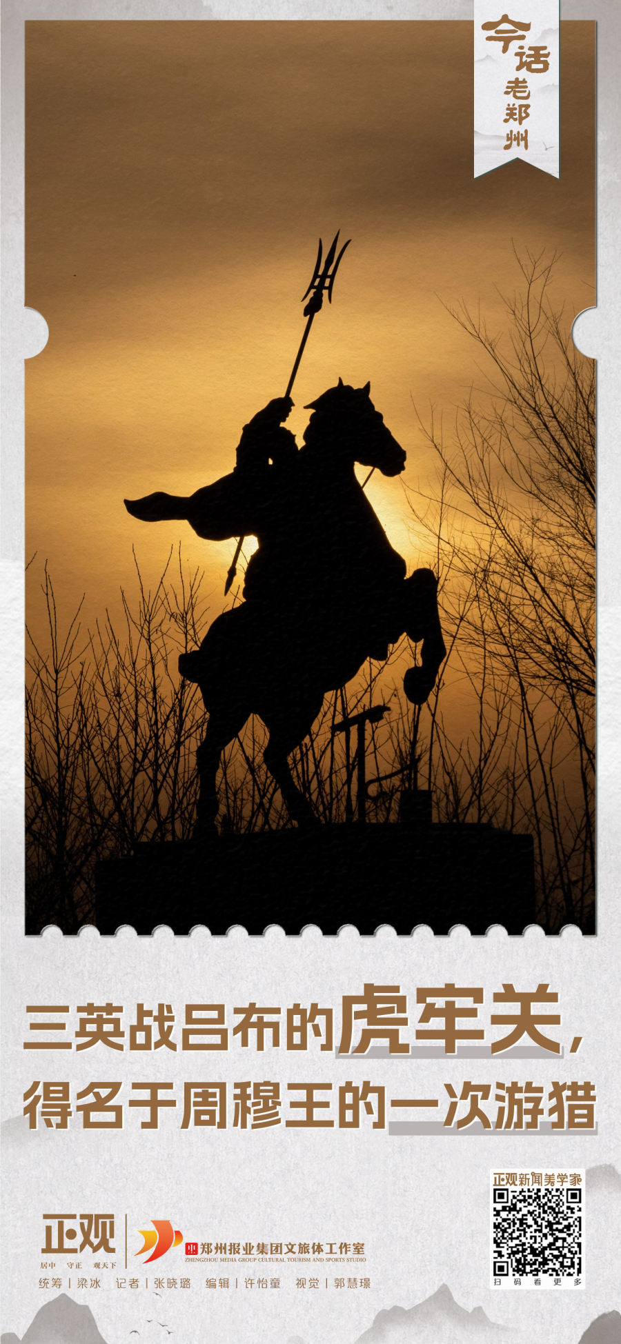 隨著新世紀鄭州城中村改造工程的推進,或有著三千年歷史的古村落關虎屯已與城市融為一體。在歲月更迭中靈魂不在的虎牢關,也變換了模樣。但人依地棲,地以人傳,這兩個名字本身就是一枚珍貴的文化切片,蘊含著傳說歷史,彰顯著城市底蘊,是我們回眸三千年風云的一縷光,照見中原過去的輝煌。
