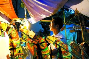 皮影戲里的人物造型材料是水牛皮,工藝復(fù)雜,造型優(yōu)美