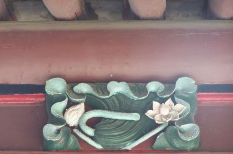 在開封遺存的大量清代和新中國成立前的建筑當(dāng)中,基本上都有柁墩。有的在門樓上,有的在主房的房檐下,這些柁墩到現(xiàn)在基本保存完好。因?yàn)榉宽敱伙L(fēng)雨侵蝕爛了,還有梁枋保護(hù),只要過梁枋不倒,基本上柁墩都會(huì)存在。柁墩的樣式基本上都以矩形為主,裝飾圖案也基本一致。大部分都是以一個(gè)碩大的荷葉為支撐,兩邊配以盛開或半開的荷花。當(dāng)然,也有全是荷葉不配荷花的。
