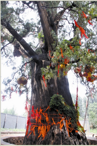 當(dāng)年日本侵略者從山西渡過黃河,炮轟那里,古柏被日本人的炮火燒掉一部分,但現(xiàn)在仍生長旺盛。