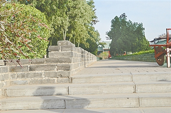 記者在龍亭大殿后面見(jiàn)到了北宋東京皇城北墻遺址,青磚壘砌的象征性的城墻仿佛在訴說(shuō)著汴京的滄桑。