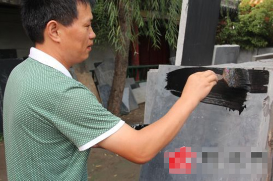 閆師傅說油漆刷好后大概需要一天才能晾干,石碑漆面要求平整。
