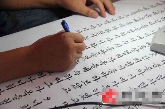 過完稿后的下一個環(huán)節(jié)是刻碑,閆師傅刻好一塊石碑一般需要3-4天,每天能刻200字左右,這個正在雕刻的韓文石碑,是中國翰園贈送韓國的碑刻作品之一,石碑刻好后,它將被運送到韓國,并記錄下中韓兩國友好和平的民間歷史文化交流。