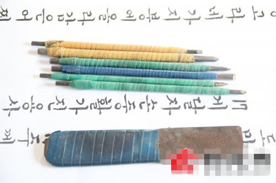 一個鑿子、幾根大小不一的刻碑筆便是閆師傅的工具。