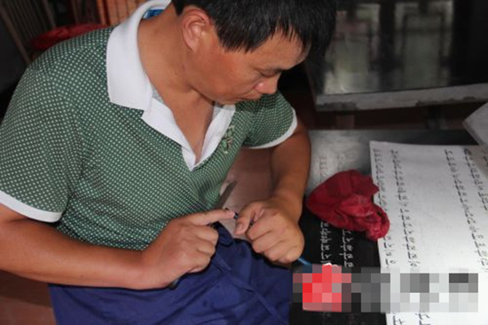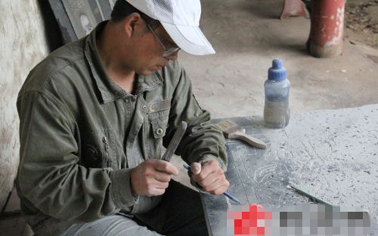 在年復一日的工作中,閆師傅每天重復著這些碑刻步驟,手指上磨出了厚厚的繭子,手腕和頸椎也都落下了疾病,閆師傅說:“現(xiàn)在暫時還沒有找到愿意學習門手藝的年輕人。”